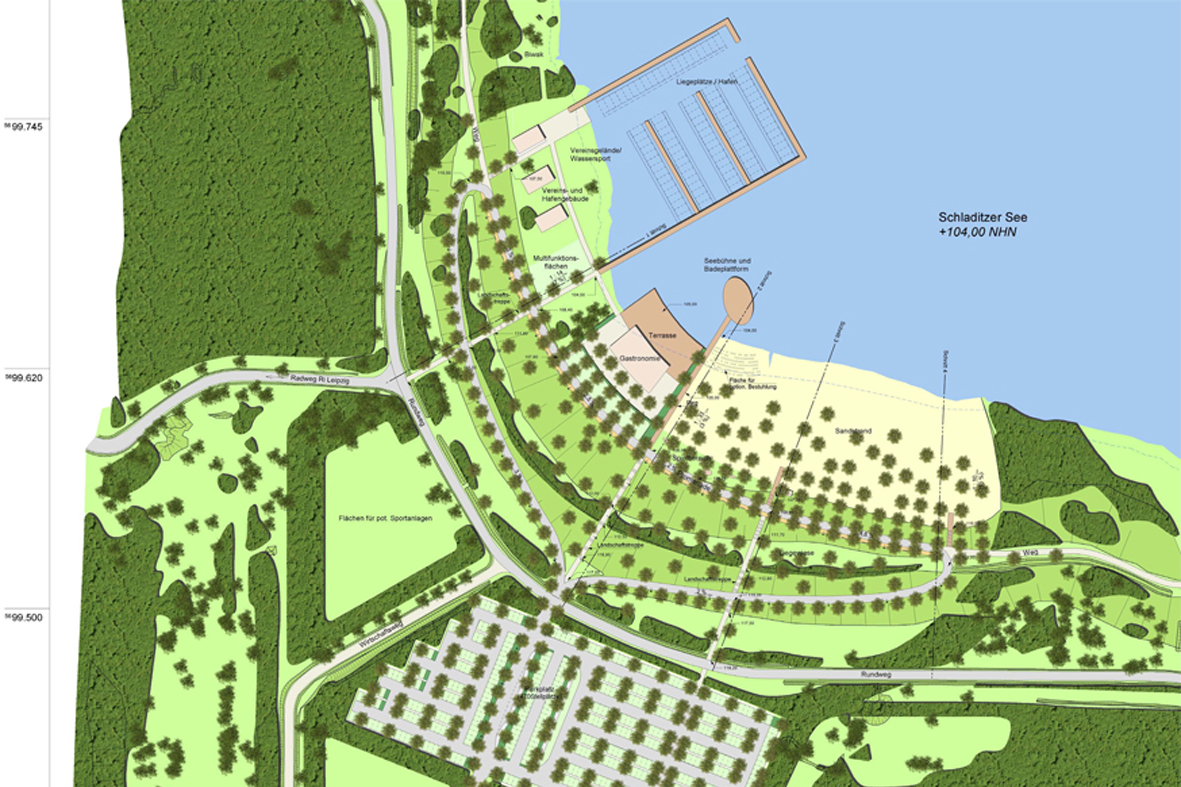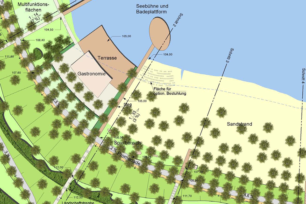 Vorplanung für den Strand Hayna am Südufer des Schladitzer Sees