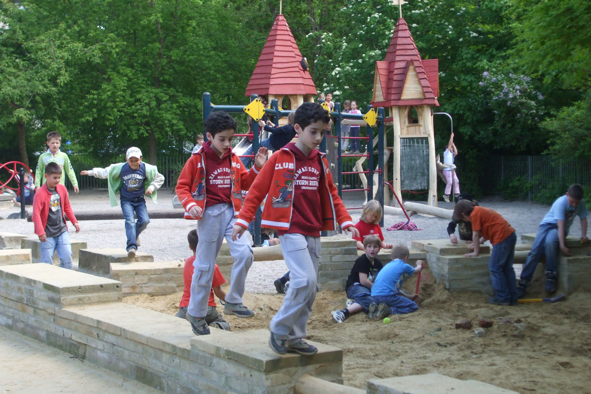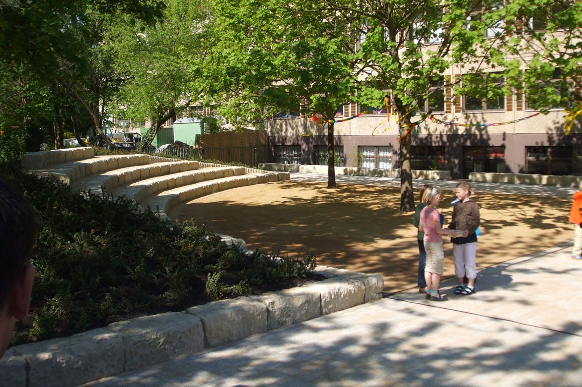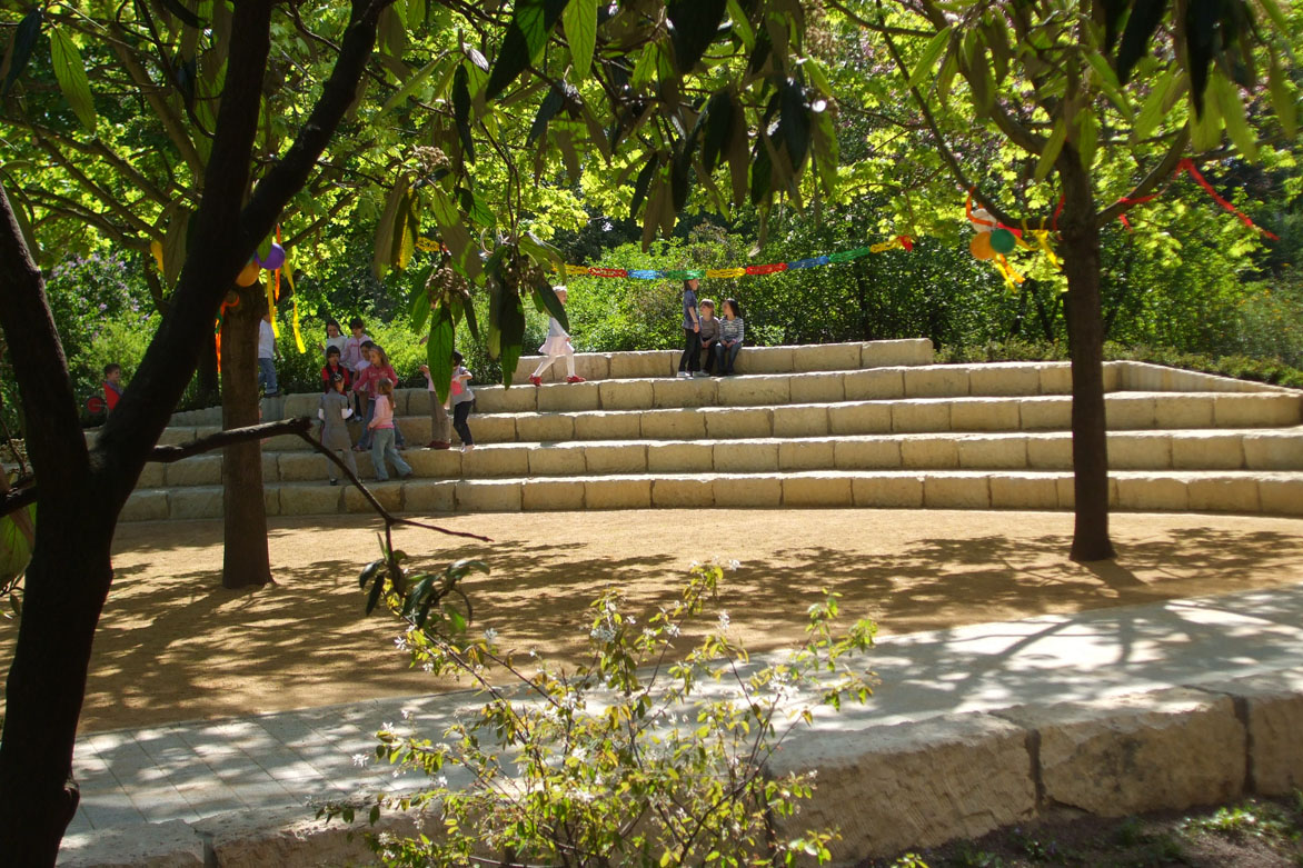 Die Grundschule beherbergt u.a. ca. 70 Thomaner, die auf musikalischem Gebiet intensiv gefördert werden. Bei den geplanten Umgestaltungsmaßnahmen wurde versucht, den Spiel-/ Nutz-/ und Erlebniswert v.a. auch unter dem Aspekt der Förderung der musisch-künstlerisch begabten Kinder zu steigern. Das den gestalterischen Höhepunkt der Anlage darstellende Amphitheater dient in diesem Sinne nicht nur als Grünes Klassenzimmer, sondern bietet ebenso eine optimale Bühne für Veranstaltungen und Auftritte.
