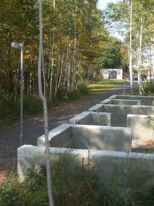 Ein wichtiges Ziel des Entwurfskonzepts war es, die vorhandenen, mal dichteren, mal offeneren Vegetationsstrukturen weitgehend in die Gestaltung zu integrieren. Somit bieten sich dem Passanten beim Durchqueren des Plangebiets schon allein dadurch verschiedene Eindrücke und Perspektiven. Ausgehend von wiesenartigen, offenen Bereichen in den Eingangszonen führt der Weg durch dichte, waldartige Areale ebenso wie durch lichtungsartige Aufweitungen oder kleinere baumfreie ‚Inseln’.